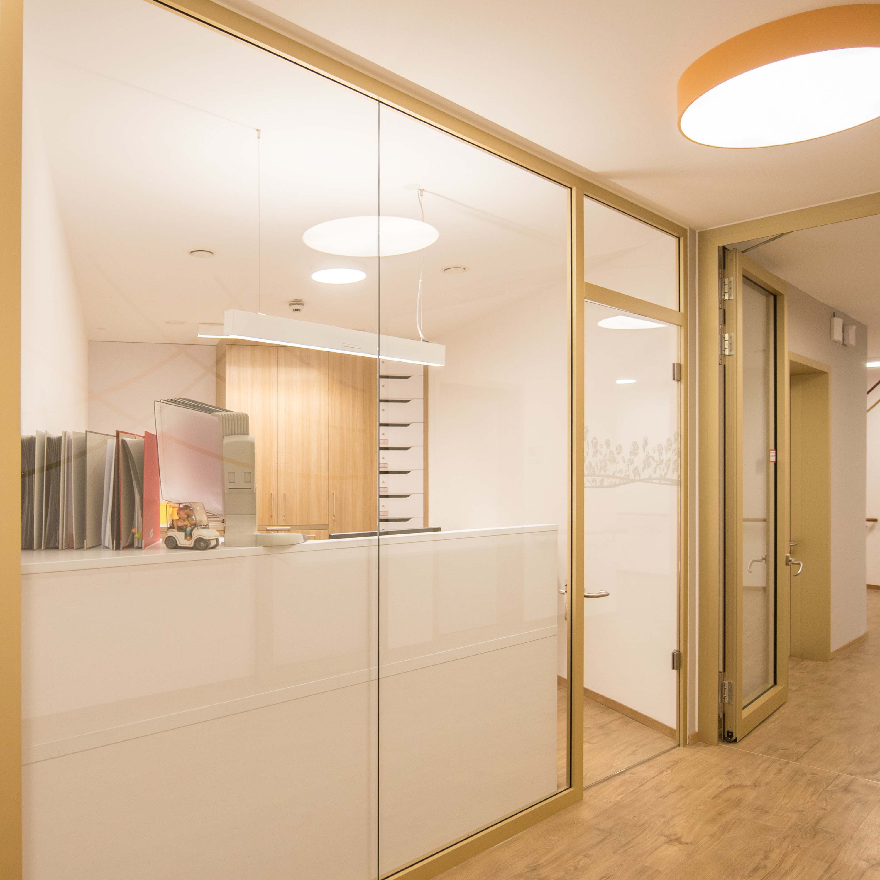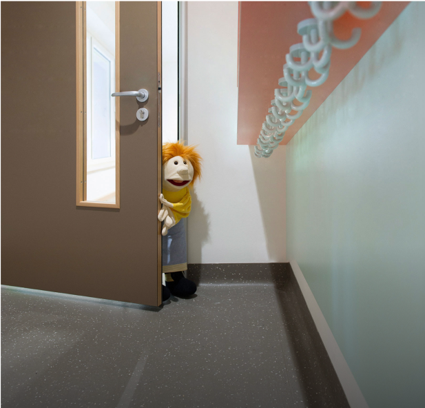 Die abgerundete Form und die in der Zarge integrierten Knautschzonen zeichnen die Fingerschutztüren aus.